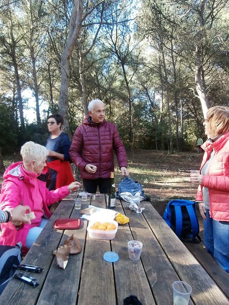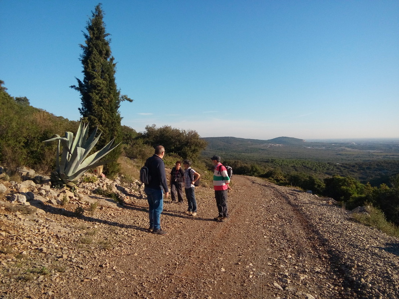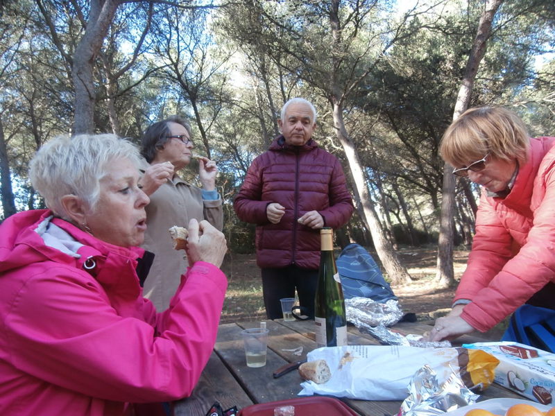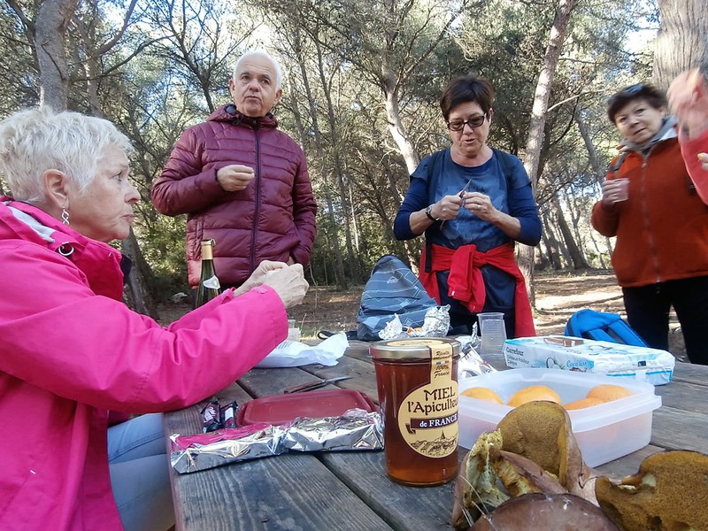 Ce vendredi 28 octobtre l'effectif n'était très nombreux, mais de qualité. Aux quatre chemins une matinée longue mais pas comme sans pain car la biscuiterie saint Michel était de sortie lors de la pause. Un grand merci à Pierre. Une belle vue comme dab. La balade n'en finissait pas. L'humidité des sols faisait remonter des odeurs agréables et surprenantes. Nous n'avons vu ni de chameaux, ni de rhinocéros, mais nous avons parlé de petite souris et d'éléphant qui couraient ensemble dans La Gardiole en soulevant de la poussière. La souris s'écria "T'as vu le nuage que nous faisons en courant".